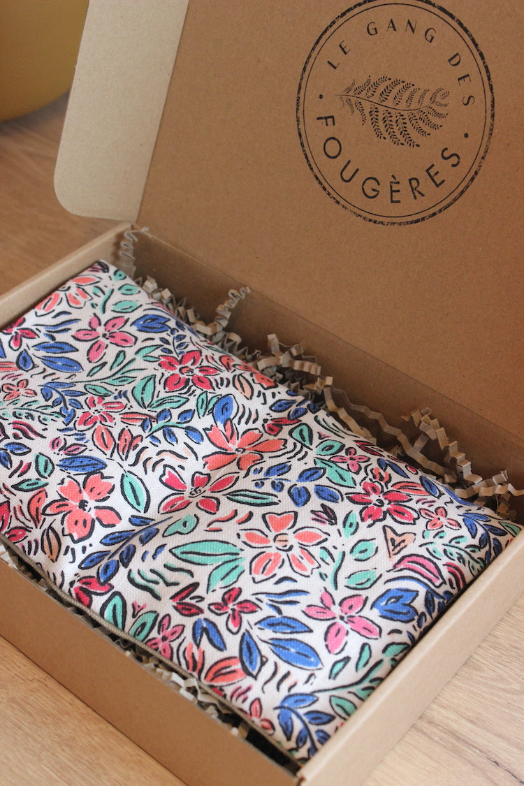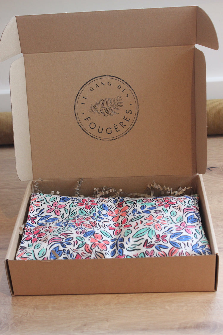 Petite bouillotte sèche en graines de lin - Fleurs aquarelle