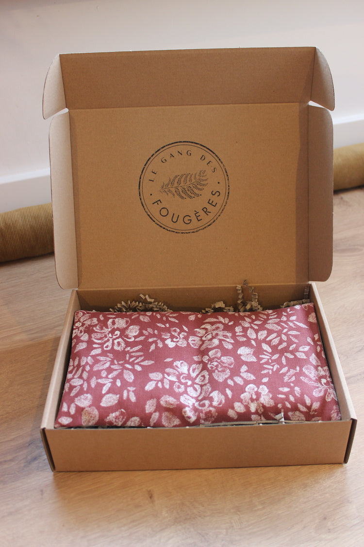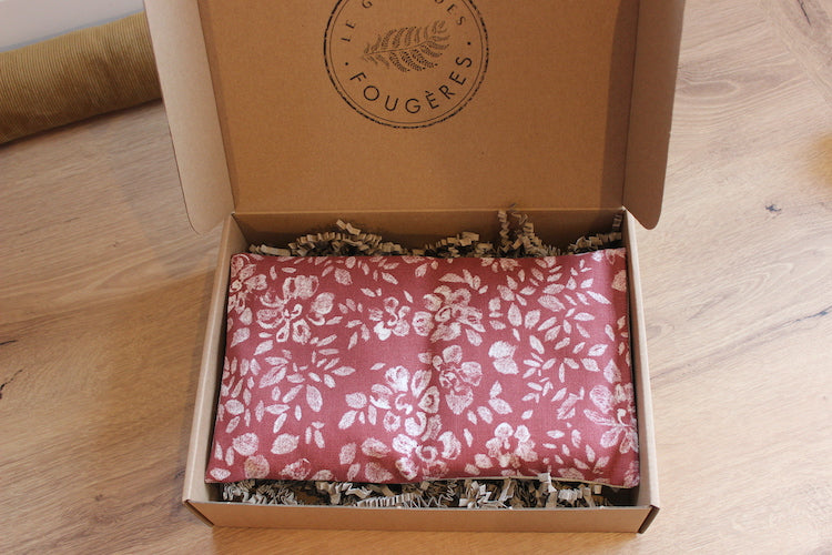 Petite bouillotte sèche en graines de lin - Fleurs craie marsala