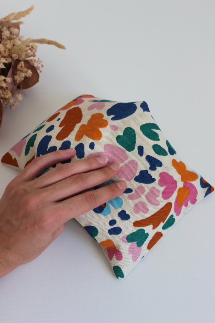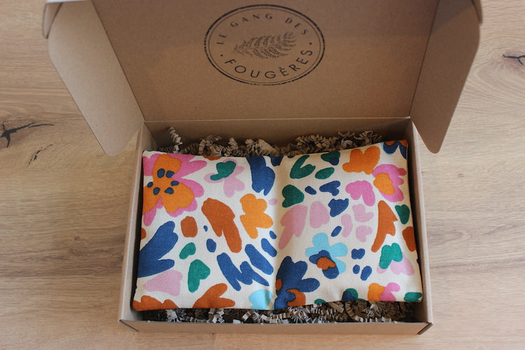 Petite bouillotte garnie de graines de lin bio, à chauffer ou refroidir selon vos besoins.