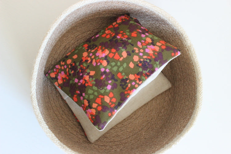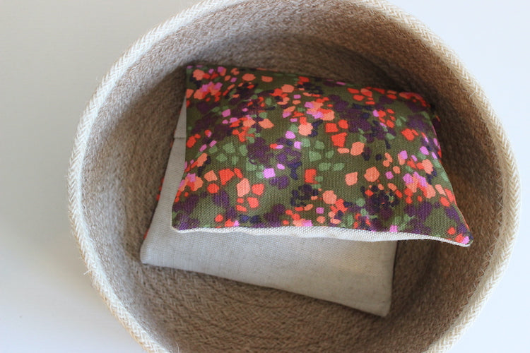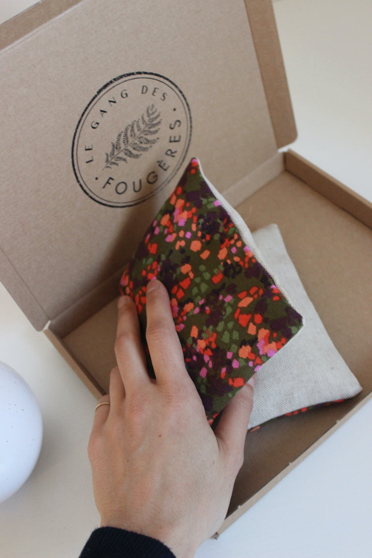 Petite bouillotte garnie de graines de lin bio, à chauffer ou refroidir selon vos besoins.